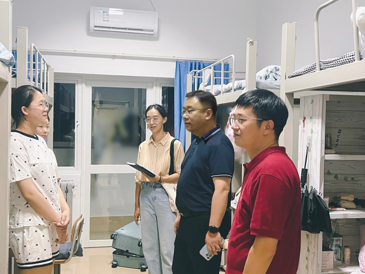 本站讯 9月5日晚,sunbet申慱官网党委书记魏斌、副书记周玉宏,副院长周新顺、尹海良等,和全体辅导员来到2023级新生宿舍开展了走访活动。