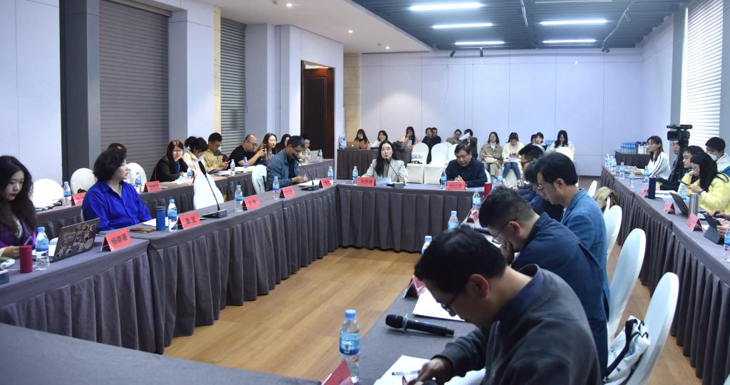 第一单元“新诗写者的跨界艺术理论与实践”由山东大学副研究员巩晓悦主持。河南省文学院的诗人蓝蓝围绕自己的创作经验,与大家分享诗剧的创作及舞台呈现的探索经验。山东大学人文社科青岛研究院马春光副教授从“诗”可以“观”视角,分析了21世纪中国电影与诗歌的交互融合。诗人王君、书法家刘凡中将组诗《婴儿易》的创作与书法实践联系起来,力图寻找中国当代诗及当代书法的互文性,并在会上展示了相关作品。鲁迅文学院助理研究员杨碧薇则围绕未来新诗与当代艺术的可能展开讨论。亚思明教授聚焦于当代艺术跨媒介创作的语图关系,重点阐述“诗画同构”、“抽象艺术的相互解读”,认为诗歌拓展了绘画的表现空间。