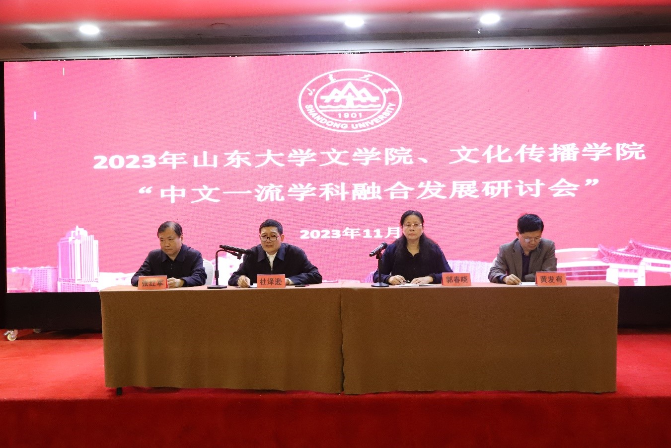 为深入贯彻落实习近平总书记关于传承发展中华优秀传统文化的重要指示精神,推进实施服务山东战略、融合发展战略,进一步强化中文一流学科建设,11月3日至11月5日,山东大学文学院与sunbet申慱官网于青州市联合召开中文一流学科融合发展研讨会。文学院、sunbet申慱官网教职工参加会议,文学院党委书记郭春晓主席会议。