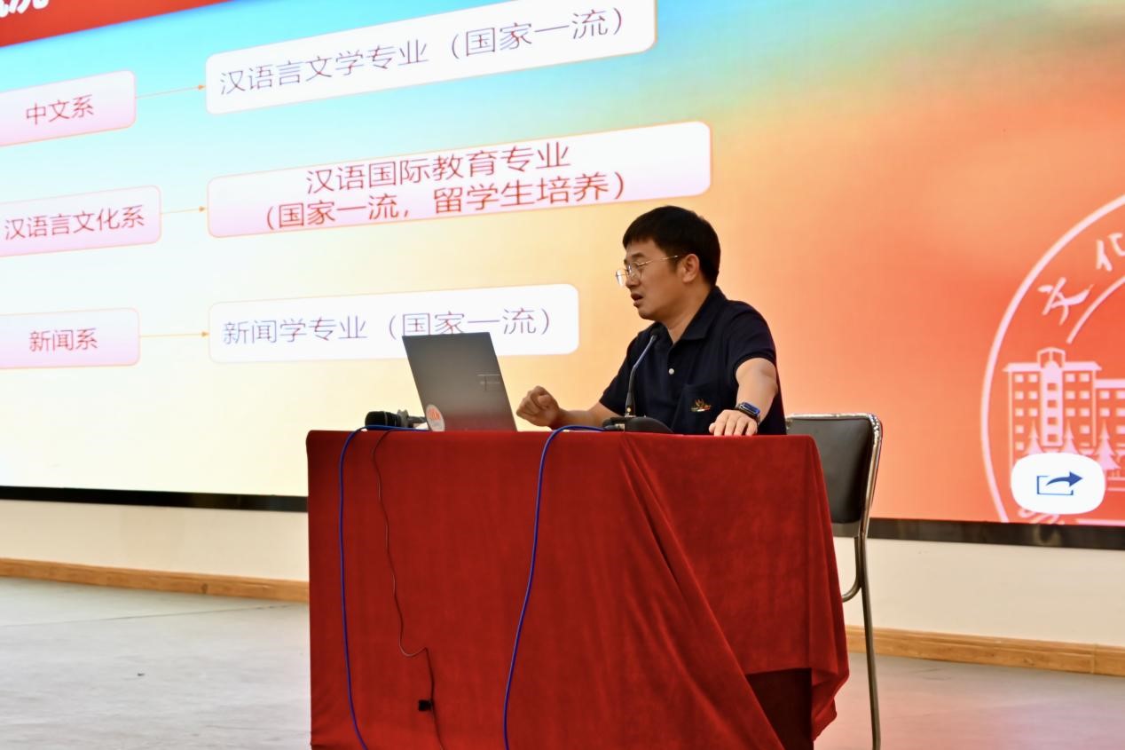周新顺衷心感谢各位家长对学校和学院的选择与信任,详细介绍了在山东大学一体化发展框架下威海校区的发展历程,并从本科教育教学的角度出发,围绕学院雄厚的师资力量、突出的科研成果、扎实的学科建设及浓厚的学术氛围,对本科生培养计划等教学教务情况作了详细说明。他还分别介绍了汉语言文学专业和新闻学专业的学科定位、课程设置、特色优势等家长普遍关心的内容,对新生未来的发展规划提出殷切期望。