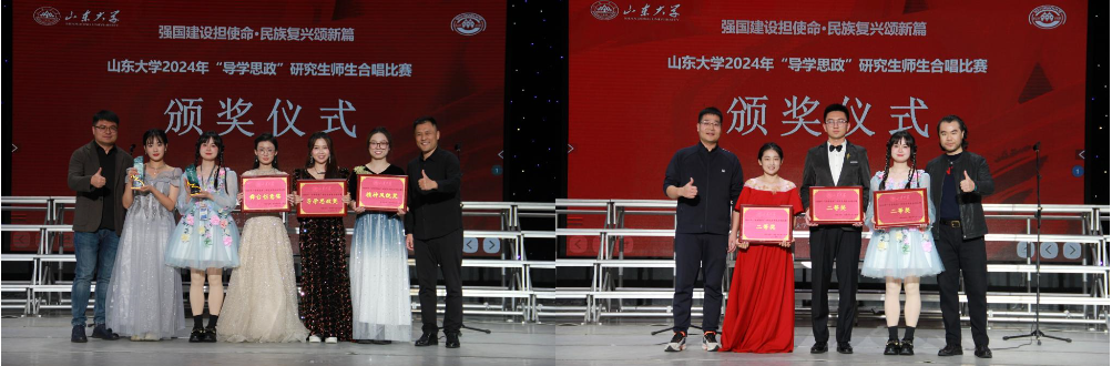 11月2日晚,山东大学2024年“导学思政”研究生师生合唱比赛(威海赛区)于艺术学院音乐厅正式举行。sunbet申慱官网以一曲《走向复兴》精彩亮相,并以优秀表现获得二等奖及导学思政奖。参与此次合唱的人员有常务副院长周新顺、党委副书记周玉宏、副院长尹海良等10名教师代表以及50名研究生代表。