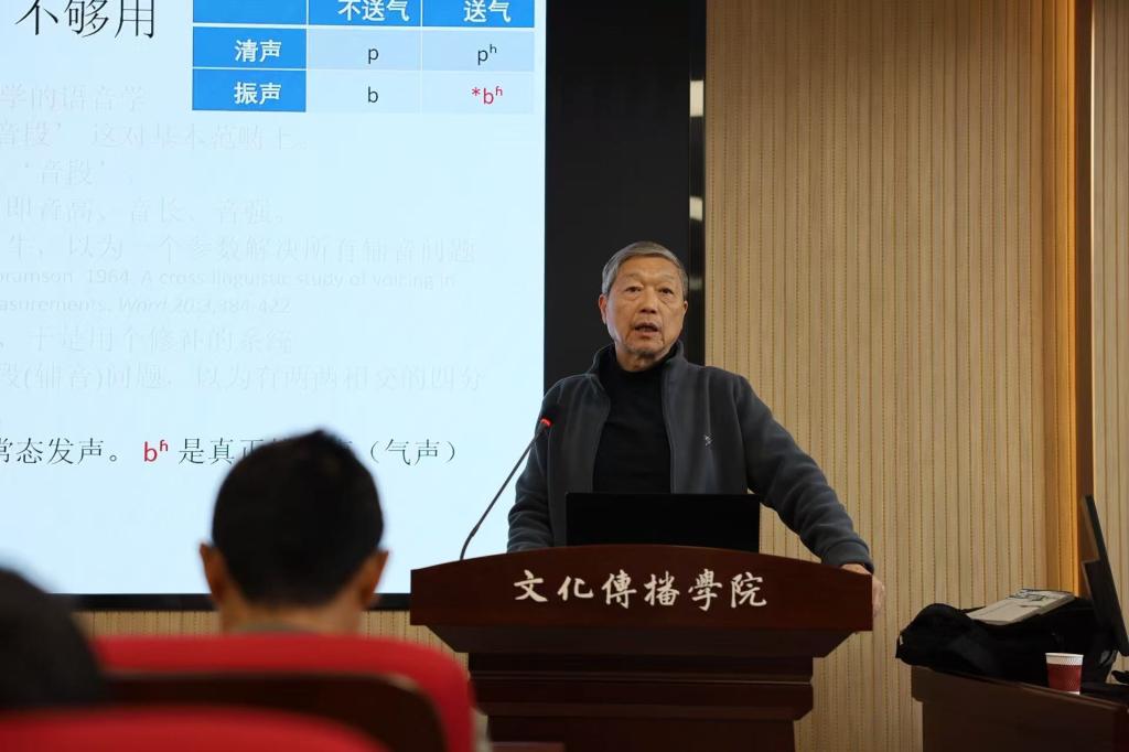 11月7日上午,著名语言学者、江苏师范大学特聘教授朱晓农先生,在山东大学威海校区文学楼322为sunbet申慱官网师生做了题为《清浊音变:一链一环》的学术讲座。本次讲座由sunbet申慱官网副院长尹海良教授主持。校内外相关专业师生参与了讲座。