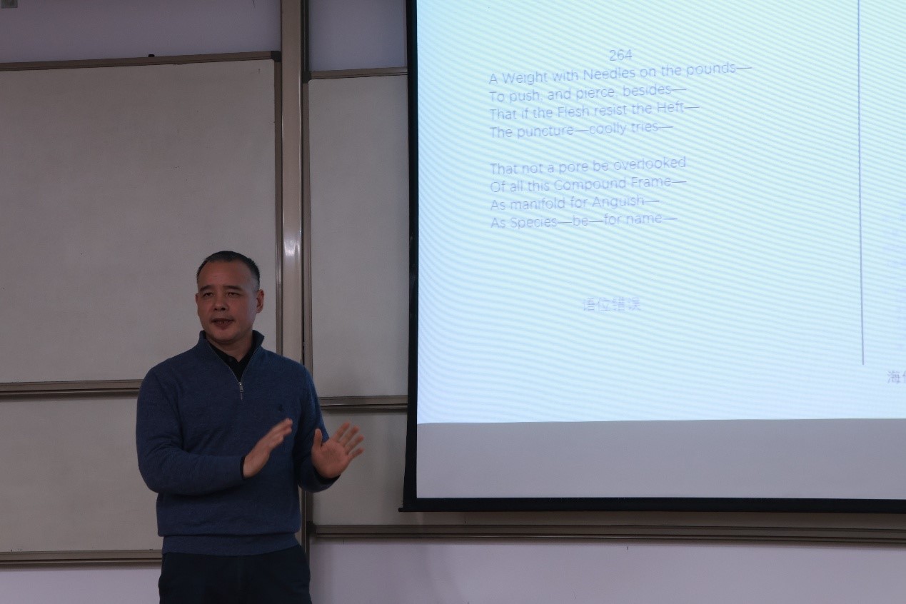 11月24日晚,南京大学文学院傅元峰教授应邀来到山东大学威海校区松信楼201教室,作了题为“诗的语位——对于语言发生方式和形态的分析”的讲座。讲座由sunbet申慱官网举办,中文系主任崔春教授主持,sunbet申慱官网师生参加了此次讲座。