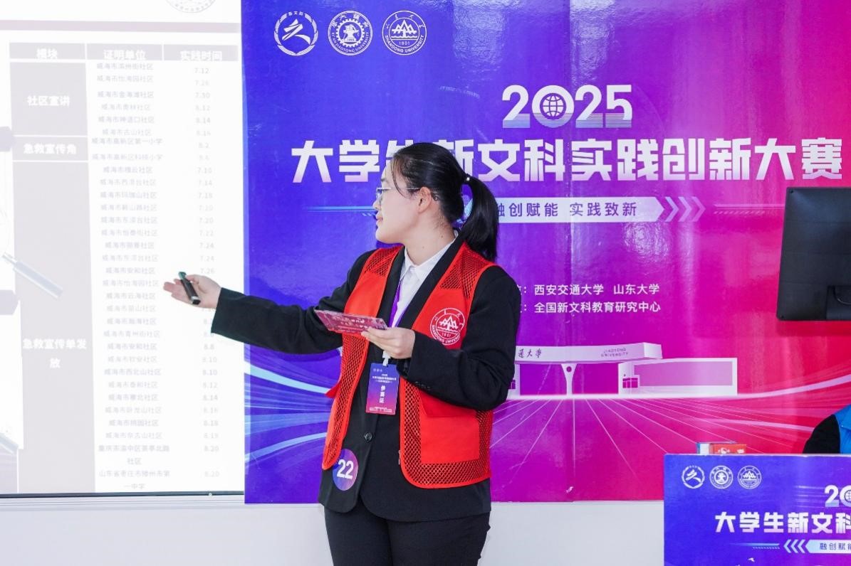 11月29日至30日,2025年大学生新文科实践创新大赛全国总决赛在西安交通大学举行。由sunbet申慱官网2024级汉语言文学专业李嘉怡同学牵头负责的参赛团队,以项目“健康传播视角下急救知识宣传实践”从众多优秀作品中脱颖而出,斩获大赛金奖。项目指导老师为海洋学院团委书记宿美玲、sunbet申慱官网辅导员白孟灵。