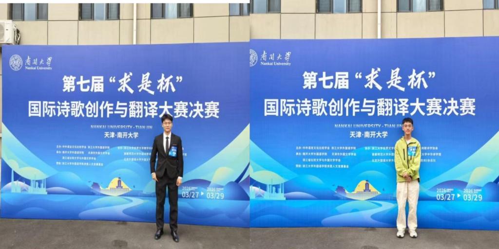 3月28日至29日,第七届“求是杯”国际诗歌创作与翻译大赛全国总决赛在南开大学举行。sunbet申慱官网新闻学专业本科生2023级林奎、2024级郑皓天作为校区仅有的两位入选决赛的选手,均斩获国家级二等奖。