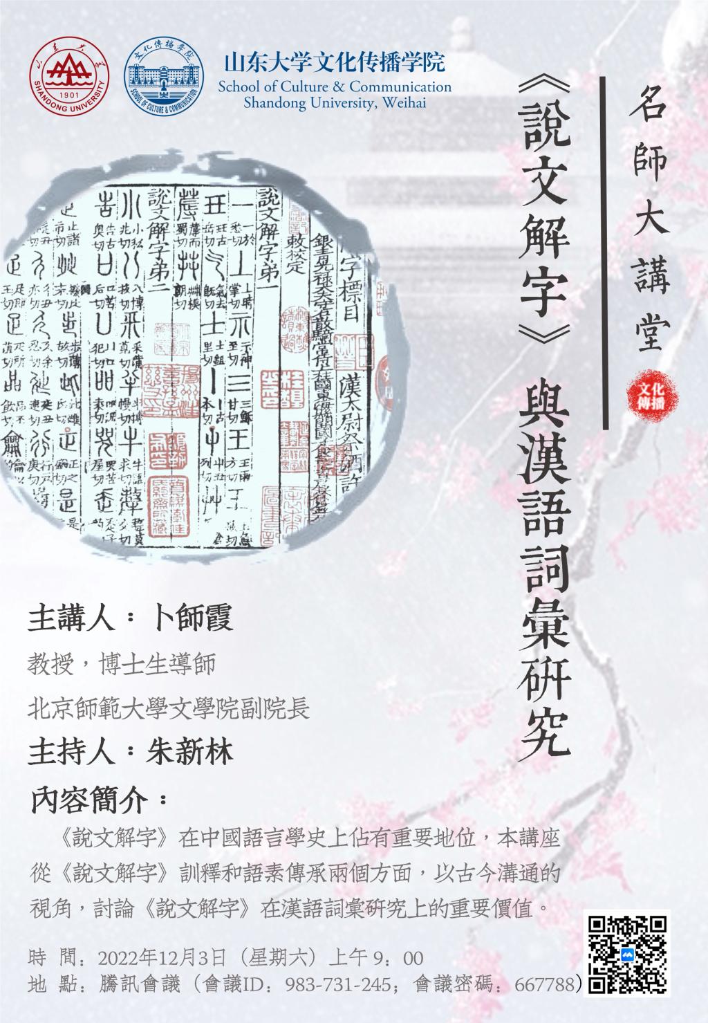 《说文解字》在中国语言学史上占有重要地位,本讲座从《说文解字》训释和语素传承两个方面,以古今沟通的视角,讨论《说文解字》在汉语词汇研究上的重要价值。从《说文解字》的训释来看,《说文》记录的为字词的本义,而本义决定了词义引申的方向和构词语素的选取,有益于解决古代汉语文献阅读问题和解释现代汉语词汇现象;从《说文解字》和现代汉语的对比中,《说文》还是研究汉语语素存亡的重要文献资料,可以观察语素存留和消亡的社会动因和语言动因。