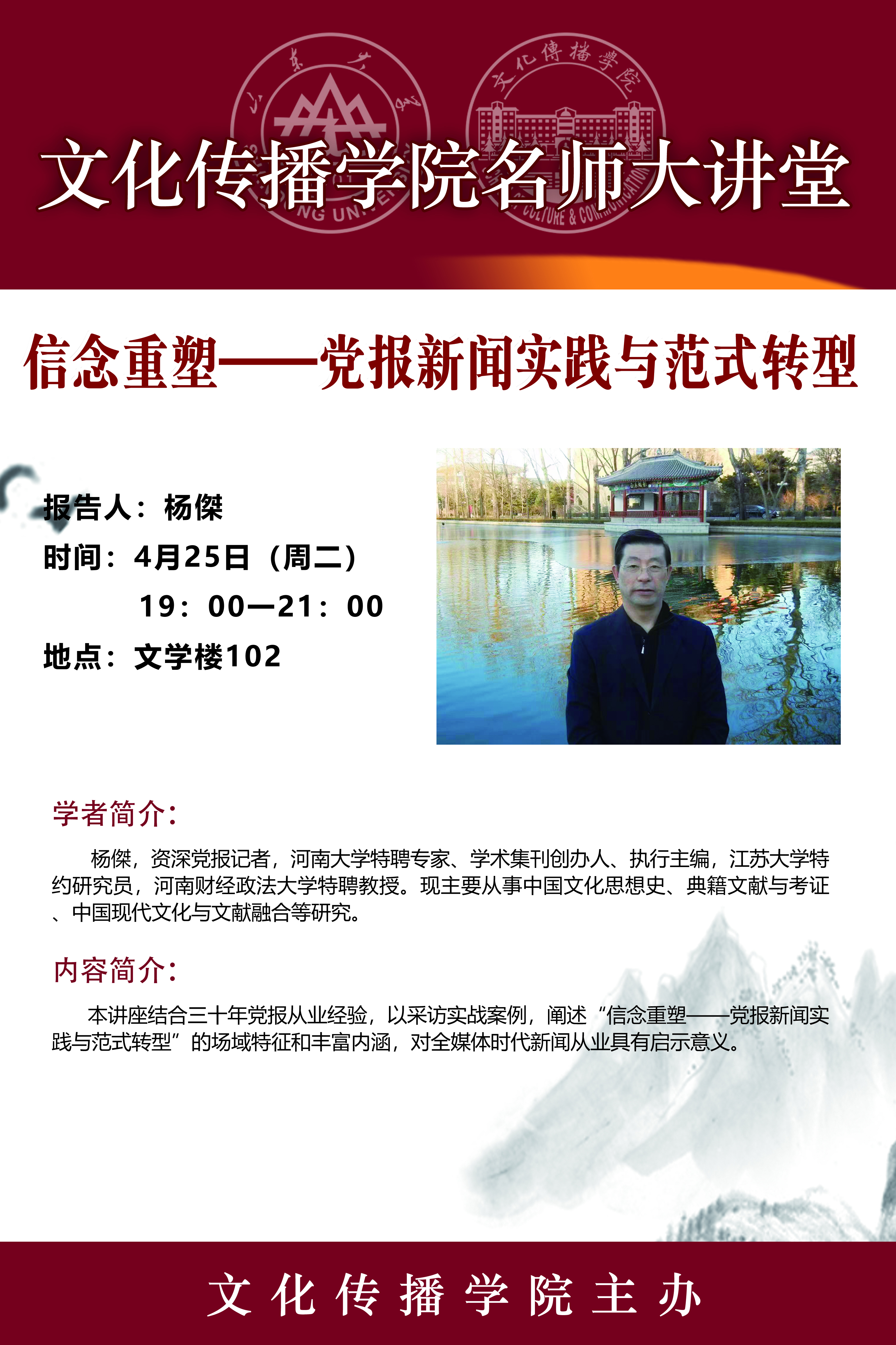 杨傑,资深党报记者,河南大学特聘专家、学术集刊创办人、执行主编,江苏大学特约研究员,河南财经政法大学特聘教授。现主要从事中国文化思想史、典籍文献与考证、中国现代