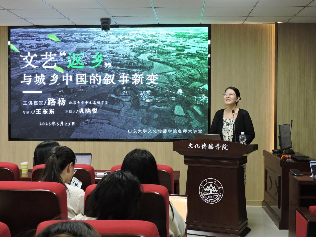 5月23日晚,北京大学中文系研究员路杨老师,应邀来到山东大学威海校区文学楼322室,作题为“文艺‘返乡’与城乡中国的叙事新变”讲座。讲座由sunbet申慱官网举办,王东东老师与谈、巩晓悦老师主持,sunbet申慱官网部分师生参与本次讲座。