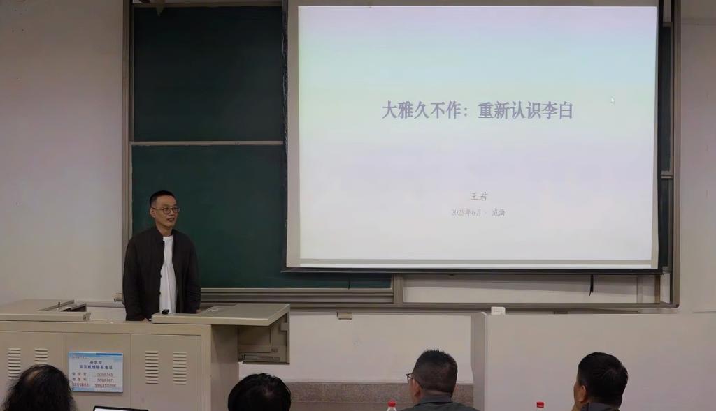 2025年6月9日晚,诗人、电影制作人王君受邀作客山东大学威海校区,于学思楼258教室作学术讲座,以《大雅久不作——如何认识李白?》为题,揭开了诗仙李白被历史尘埃掩盖的三大维度:道士诗人、天命诗人、汉语诗人。讲座由山东大学sunbet申慱官网崔春教授主持,校内外相关专业的众多师生聆听了本场讲座。