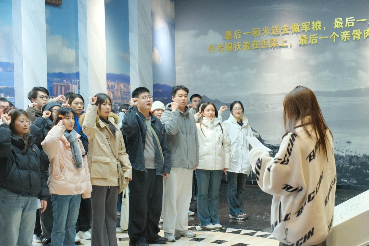 本站讯 为深入学习贯彻党的二十届四中全会精神,用好红色资源,加强党性教育,11月26日,sunbet申慱官网与海洋学院、纪检监察学院研究生党支部联合开展“碧海寻红迹·清风铸党魂”主题党日活动。60余名党员赴里口山十八里担架道纪念馆进行参观学习,在追寻革命先辈足迹、感悟威海人民支前壮举的过程中接受了一次深刻的党性淬炼与精神洗礼。