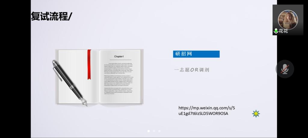 在分享会中,王若瑾从复试流程、材料准备、复习参考及设备调试这四个方面进行阐述,带领同学们明确了考研复试的流程及内容,也为同学们系统地、有针对性地进行复习提供了参考。李振华则从复试考官老师的角度出发,梳理了复试中常出现的考题内容,并为同学们准备考研复试提出了切实可行的建议。