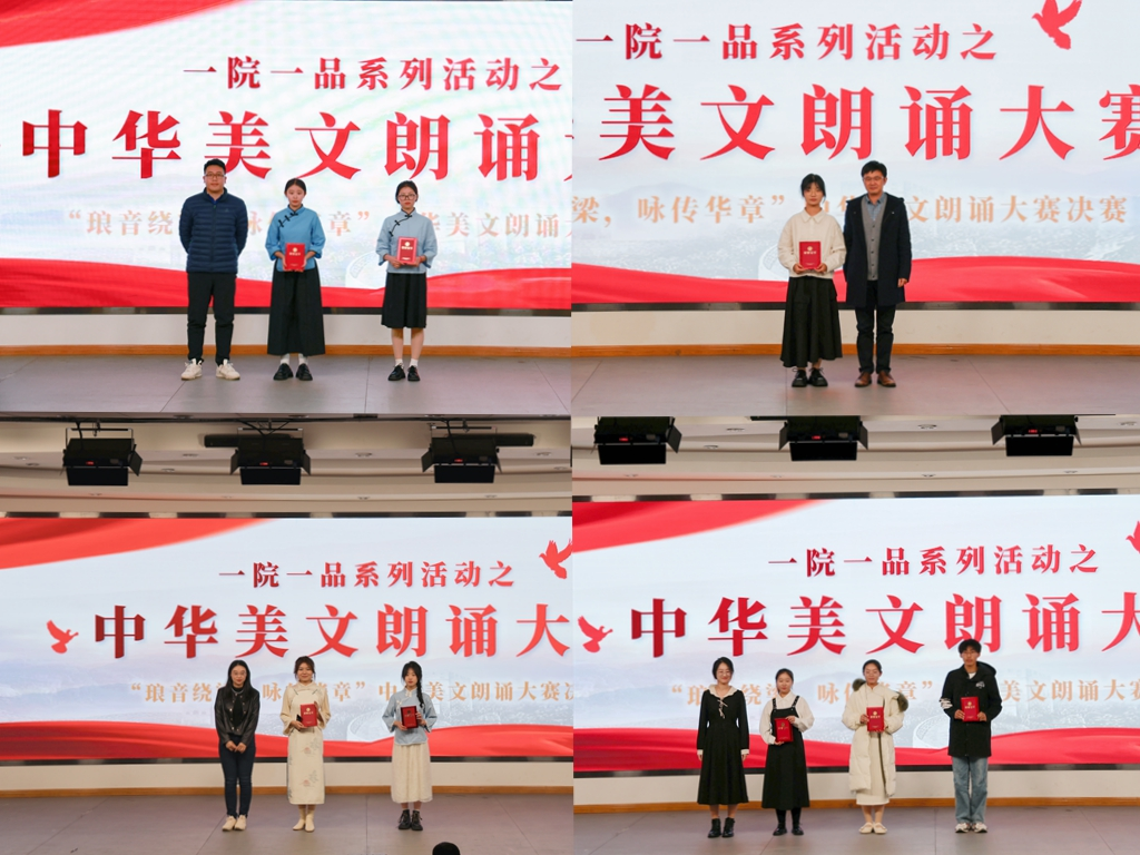 本站讯 11月21日晚,依托sunbet申慱官网“一院一品”项目立项,由校区团工委主办、sunbet申慱官网团委承办的“琅音绕梁,咏传华章”中华美文朗诵大赛决赛在玲珑学堂举行。sunbet申慱官网副院长周新顺、学院教师巩晓悦、校区团工委学生会指导教师刘儒及主持演讲协会指导教师许广义担任评委。李冰蕊、洪江担任主持人,共有经初赛选拔出的8支队伍入围决赛。