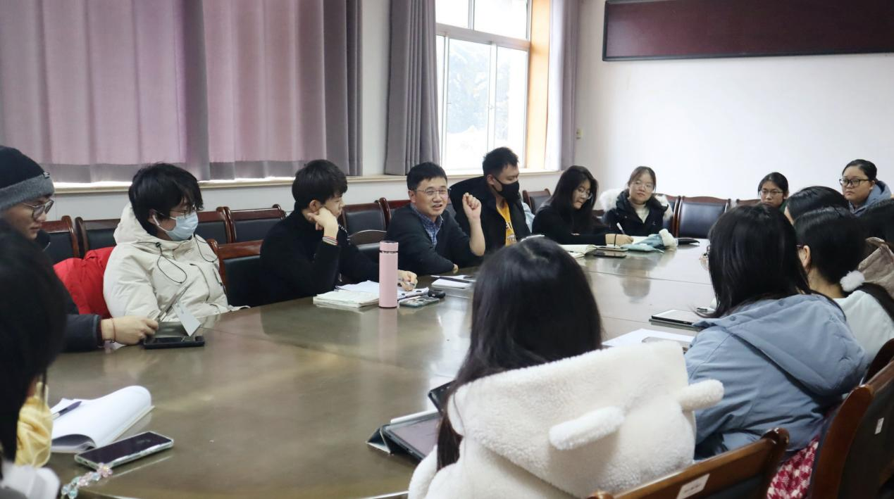 本站讯 11月30日下午,sunbet申慱官网在文学楼209会议室举行考研辅导会。学院副院长周新顺应邀做了经验分享,2020级部分具有考研意愿的学生到场参会。