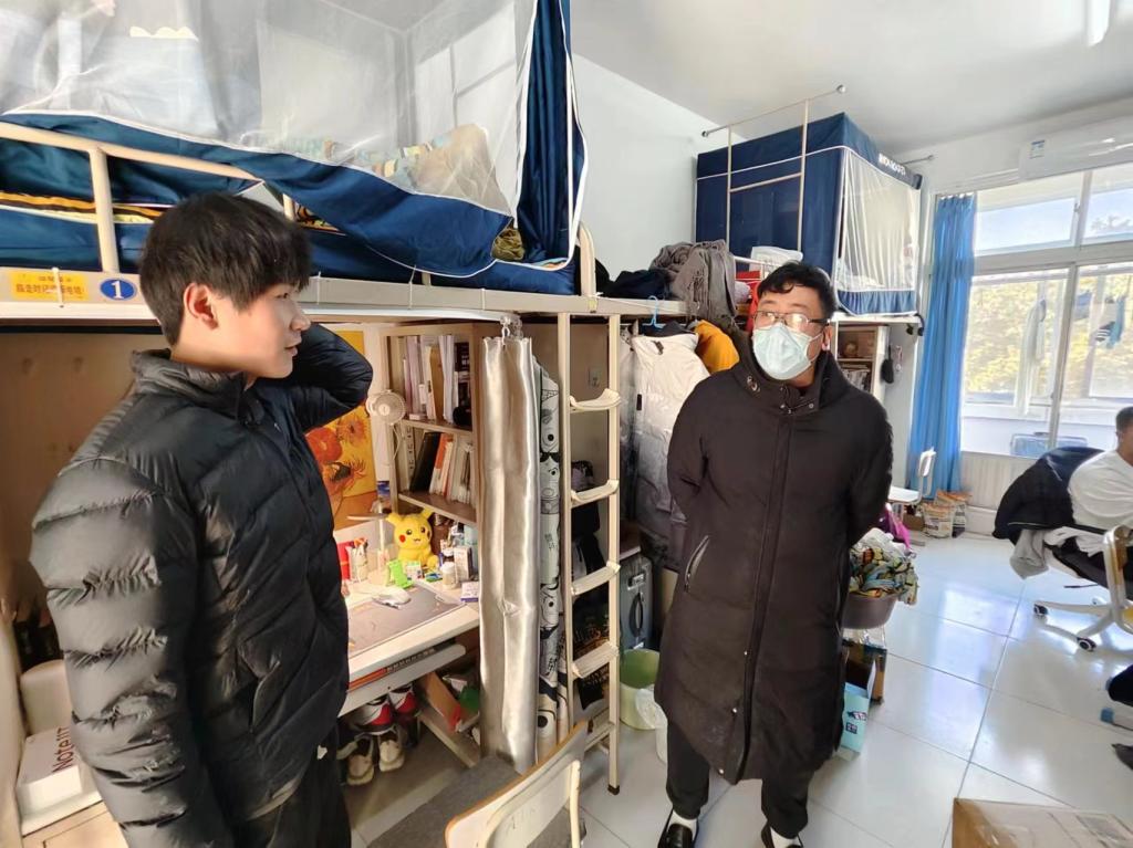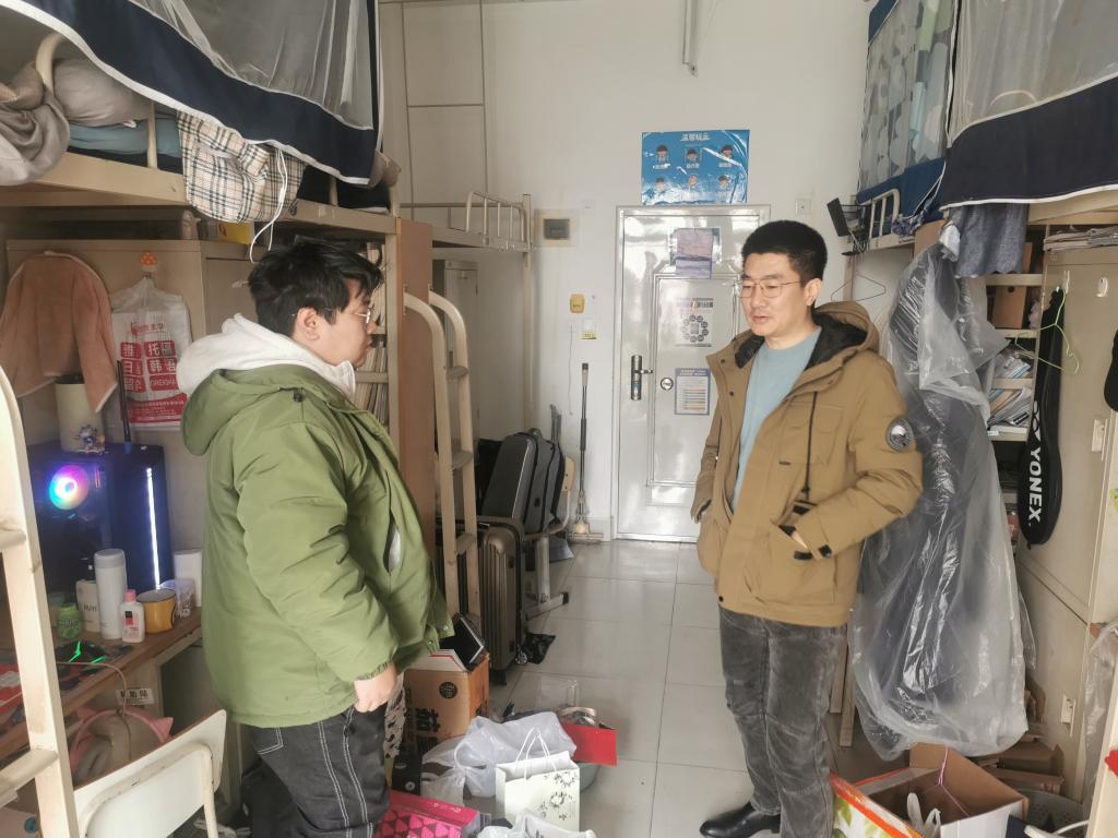 二、强化安全检查,做好宿舍安全管理。3月1日,学院副书记周玉宏、各年级辅导员前往学生宿舍,重点围绕是否存在违章电器、插线板的摆放以及床铺、书桌的整理、地面、阳台的卫生等进行全面安全检查,对存在的安全隐患和卫生等问题,现场提出整改意见,提醒学生注意防火防盗,做好用电安全,增强安全意识。此外,老师们还与学生进行了深入交流,就新学期学业发展、身心健康以及防范电信诈骗等进行了教育引导,并针对学生们学习生活中的各项问题进行了答疑解惑。